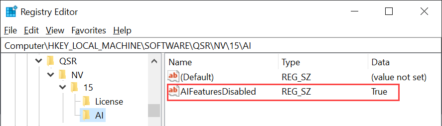 Path: HKEY_LOCAL_MACHINE\SOFTWARE\QSR\NV\15\AI\